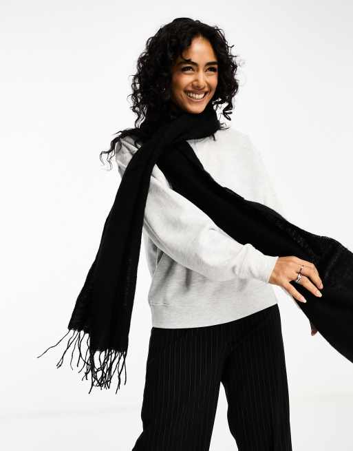 ASOS DESIGN supersoft scarf with tassels in black