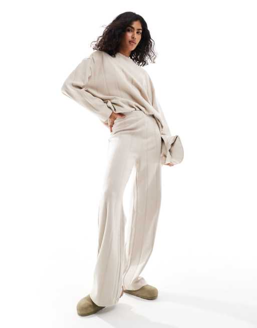 ASOS DESIGN supersoft wide rib trackies in warm cream (part of a set)