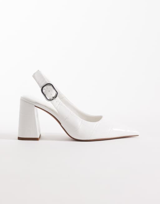ASOS DESIGN Surrey slingback mid block heels in white croc