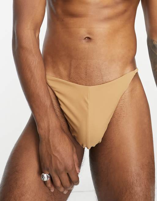 ASOS DESIGN swim briefs with high leg in brown