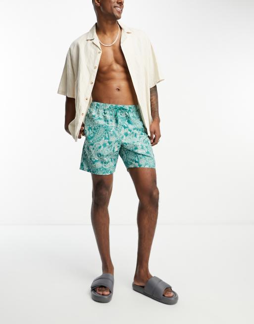 ASOS DESIGN swim shorts in short length in floral print in green