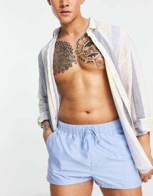 ASOS DESIGN swim shorts in super short length in blue