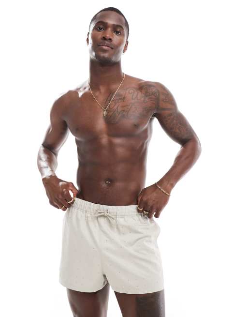 ASOS DESIGN swim shorts in super short length with all diamante in grey