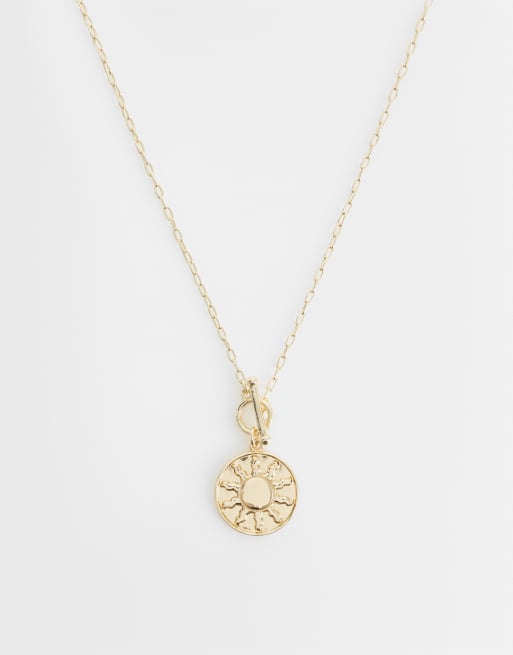 ASOS DESIGN t-bar necklace with sun pendant in gold tone