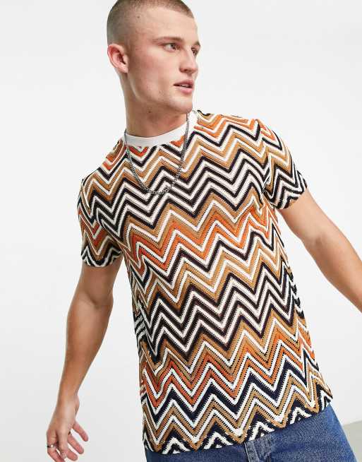ASOS DESIGN t-shirt in geometric crochet fabric