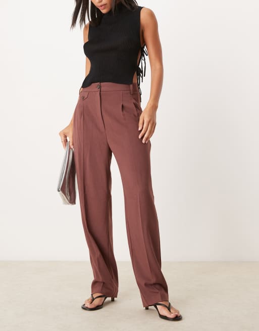ASOS DESIGN tab detail straight leg tailored pants in burgundy