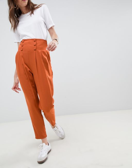 ASOS DESIGN tailored high waisted tapered pants with button detail