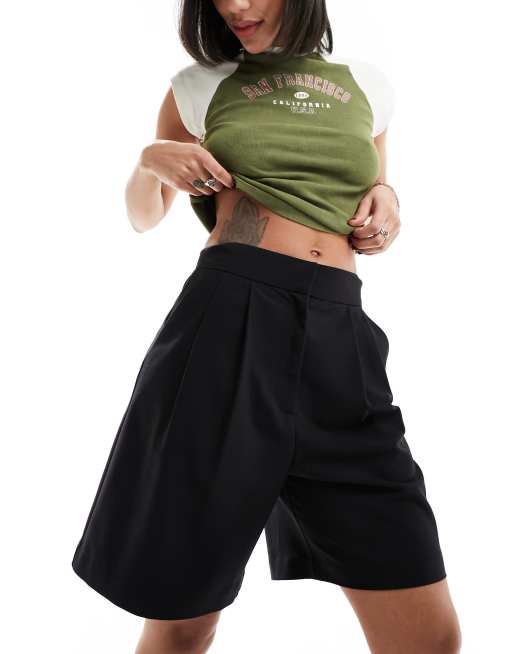 ASOS DESIGN tailored longline shorts in black