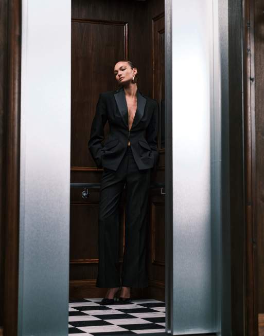 ASOS DESIGN tailored occasion straight leg pants with tux side panel in black