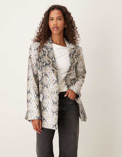 ASOS DESIGN tailored relaxed faux leather blazer in snake