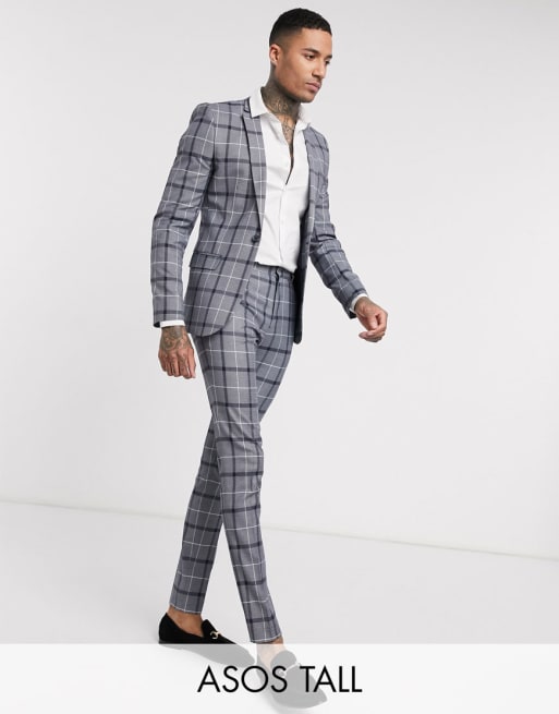 ASOS DESIGN Tall super skinny suit in navy and white bold check
