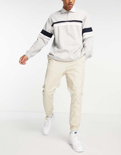 ASOS DESIGN tapered chino trackies with elasticated waist in beige
