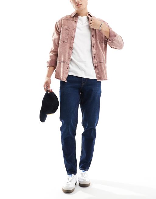 ASOS DESIGN tapered fit stretch jeans in dark wash blue