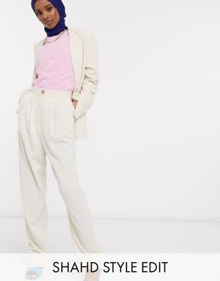 ASOS DESIGN tapered high waist dad suit pants in ecru