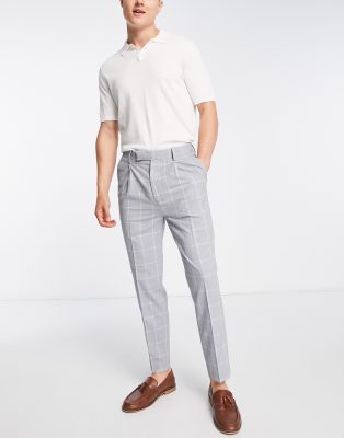 ASOS DESIGN tapered smart pants in grey windowpane check