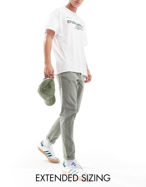 ASOS DESIGN tapered washed chinos in light khaki