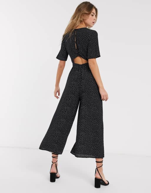 ASOS DESIGN tea jumpsuit with button back detail in spot print