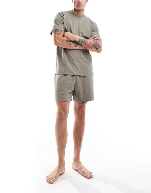 ASOS DESIGN texture lounge set in khaki
