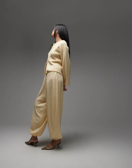 ASOS DESIGN textured balloon pants in yellow (part of a set)
