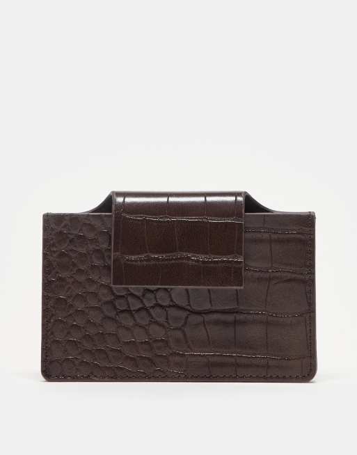 ASOS DESIGN textured croc card holder in chocolate