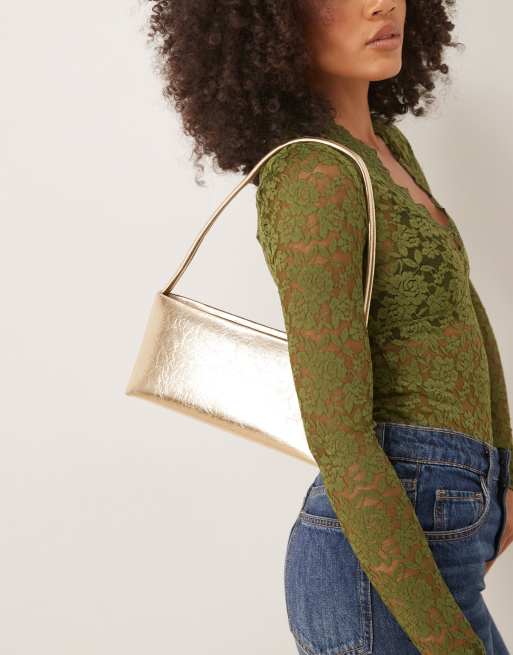 ASOS DESIGN textured minimal 90s shoulder bag in gold