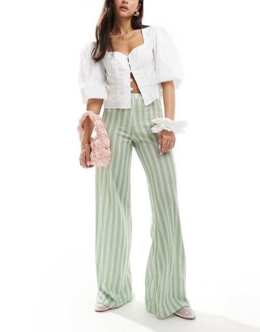 ASOS DESIGN textured wide leg pull on pants in green stripe