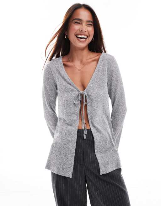 ASOS DESIGN tie front cardigan in grey