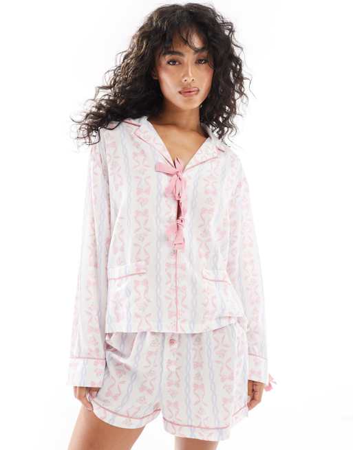 ASOS DESIGN tie front shirt and shorts pyjama set in bow print