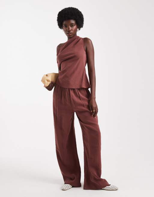 ASOS DESIGN tie waist straight leg pants (part of a set)