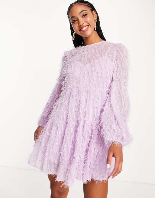 ASOS DESIGN tiered mini dress in fluffy texture in lilac