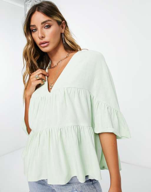 ASOS DESIGN tiered smock top with frill sleeve in apple