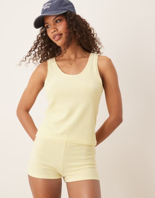 ASOS DESIGN towelling micro short co-ord in lemon