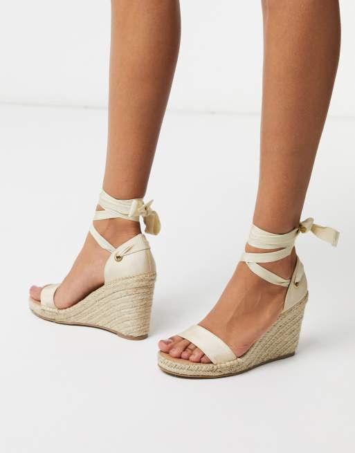 ASOS DESIGN Treat tie leg espadrille wedge sandals in natural