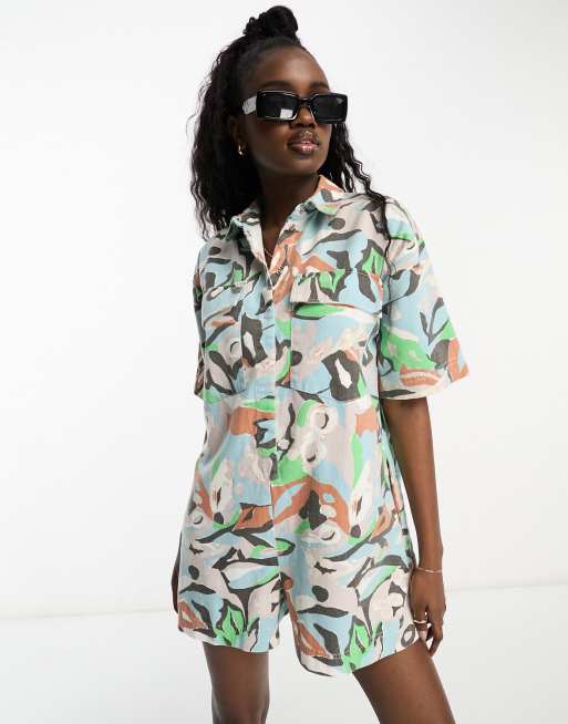 ASOS DESIGN twill oversized romper playsuit in abstract print