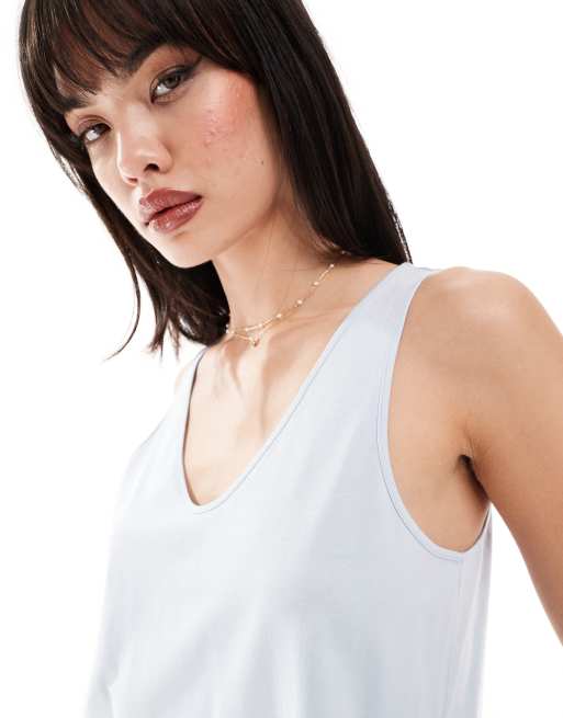ASOS DESIGN ultimate cotton singlet with scoop neck in light blue
