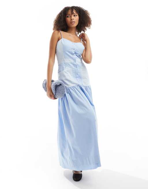 ASOS DESIGN ultimate panelled denim-look tiered maxi dress in blue
