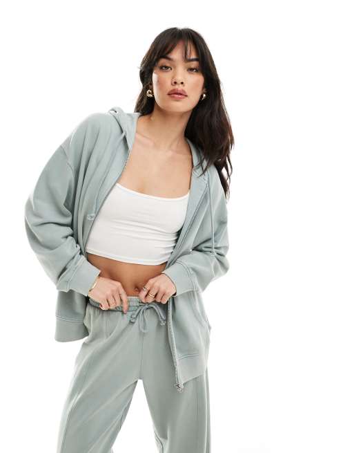 ASOS DESIGN ultimate zip through hoodie in washed sage green