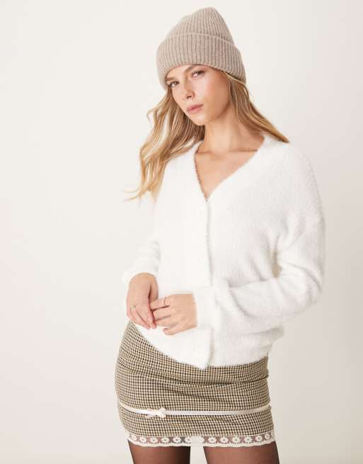 ASOS DESIGN ultra fluffy oversized rib cardigan in white