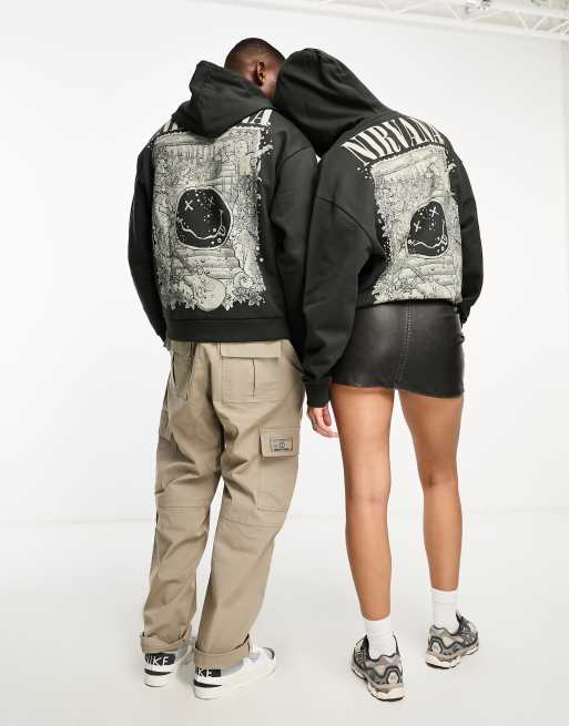 ASOS DESIGN unisex licence oversized hoodie with Nirvana print in charcoal