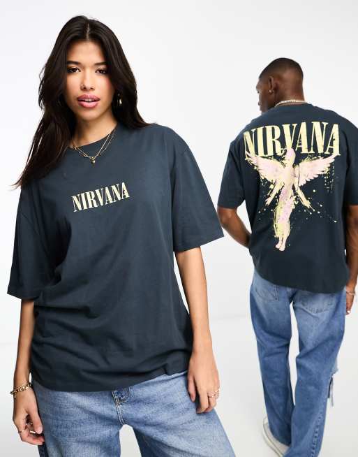 ASOS DESIGN unisex licence oversized t-shirt with Nirvana prints in navy