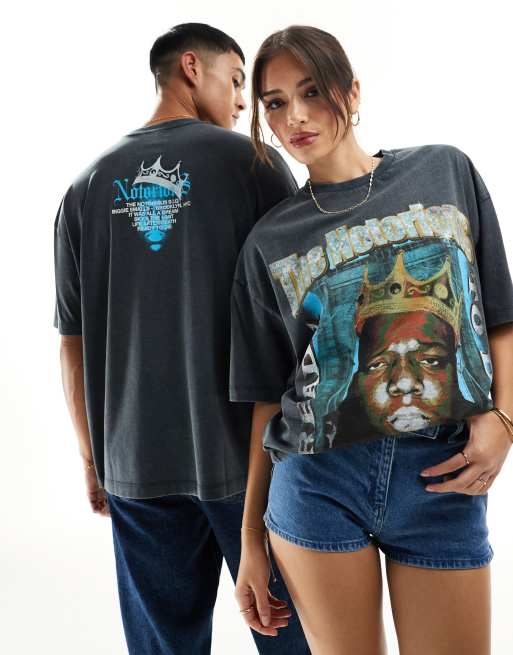 ASOS DESIGN unisex oversized licence t-shirt with Biggie Smalls graphic prints in washed black