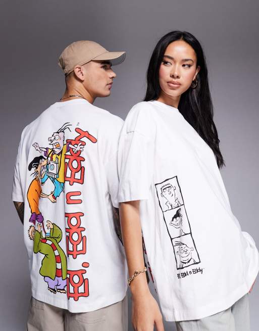 ASOS DESIGN unisex oversized licence t-shirt with Ed, Edd n Eddy puff prints in white