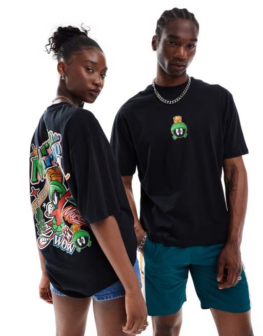ASOS DESIGN unisex oversized licence t-shirt with Looney Tunes Marvin the Martian prints in black
