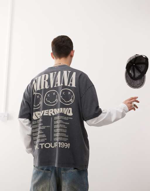 ASOS DESIGN unisex oversized licence t-shirt with Nirvana Nevermind puff prints in washed black