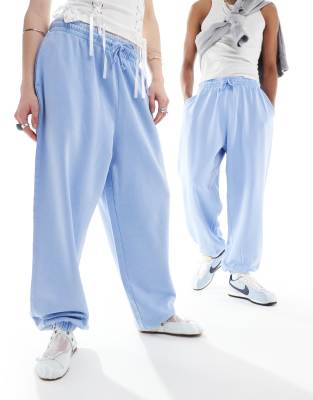 ASOS DESIGN unisex oversized trackies in acid wash denim blue