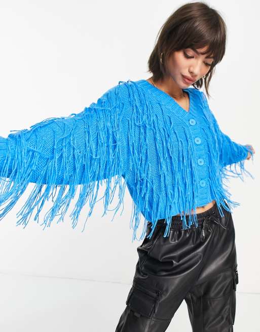 ASOS DESIGN v-neck cardigan in all-over blue tassel