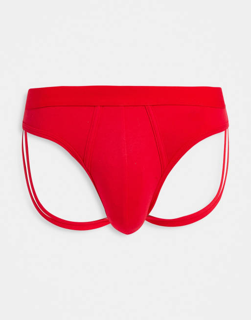 ASOS DESIGN valentines jock strap in red with double leg strap
