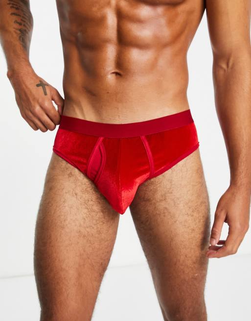 ASOS DESIGN velour briefs in red