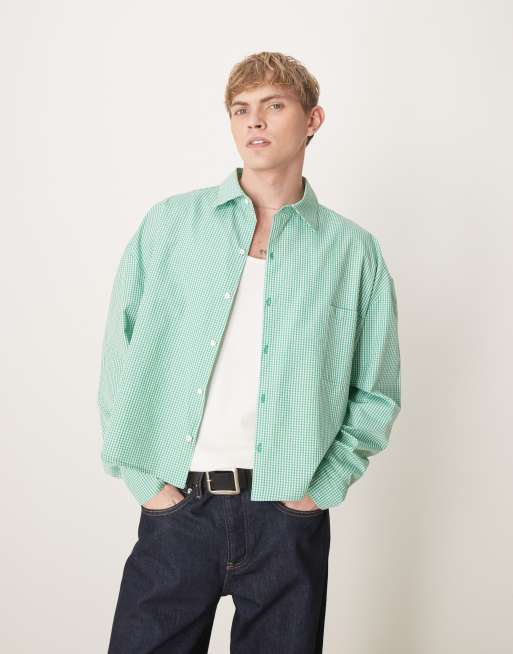 ASOS DESIGN volume oversized boxy shirt in micro green check