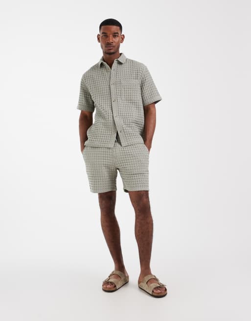 ASOS DESIGN waffle texture set in green